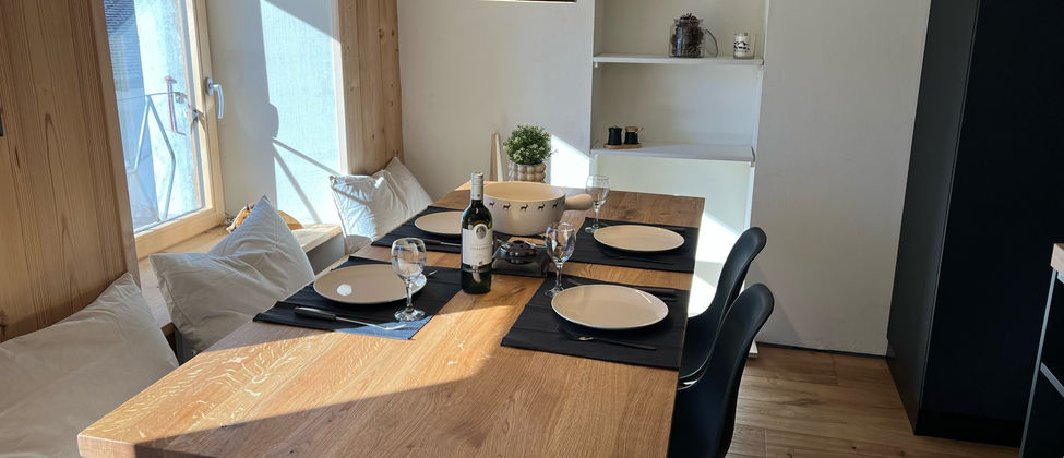 Le logement comprend un grand espace de vie avec une cuisine entièrement aménagée, un coin repas et un salon cozy avec une magnifique vue sur le Cervin et le clocher du village. Deux chambres à coucher avec armoires intégrées et 2 salles douches/wc attenantes. Une entrée avec grand espace de rangement. Local à ski/vélo dans le garage. Place de parking intérieur. La hauteur sous plafond est de 2m.